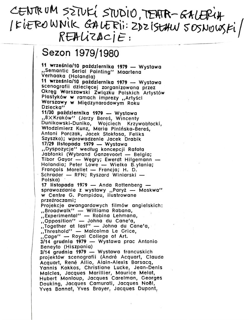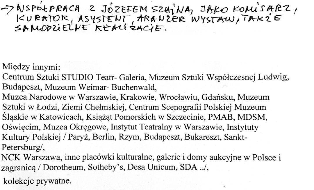 Od 1979 do 1982 roku pracował w galerii „Studio” w Centrum Sztuki STUDIO Teatr- Galeria w Warszawie, gdzie zajmował się organizacją wystaw i wydarzeń artystycznych. Asystent prof. Józefa Szajny, autor kilkudziesięciu jego wystaw.