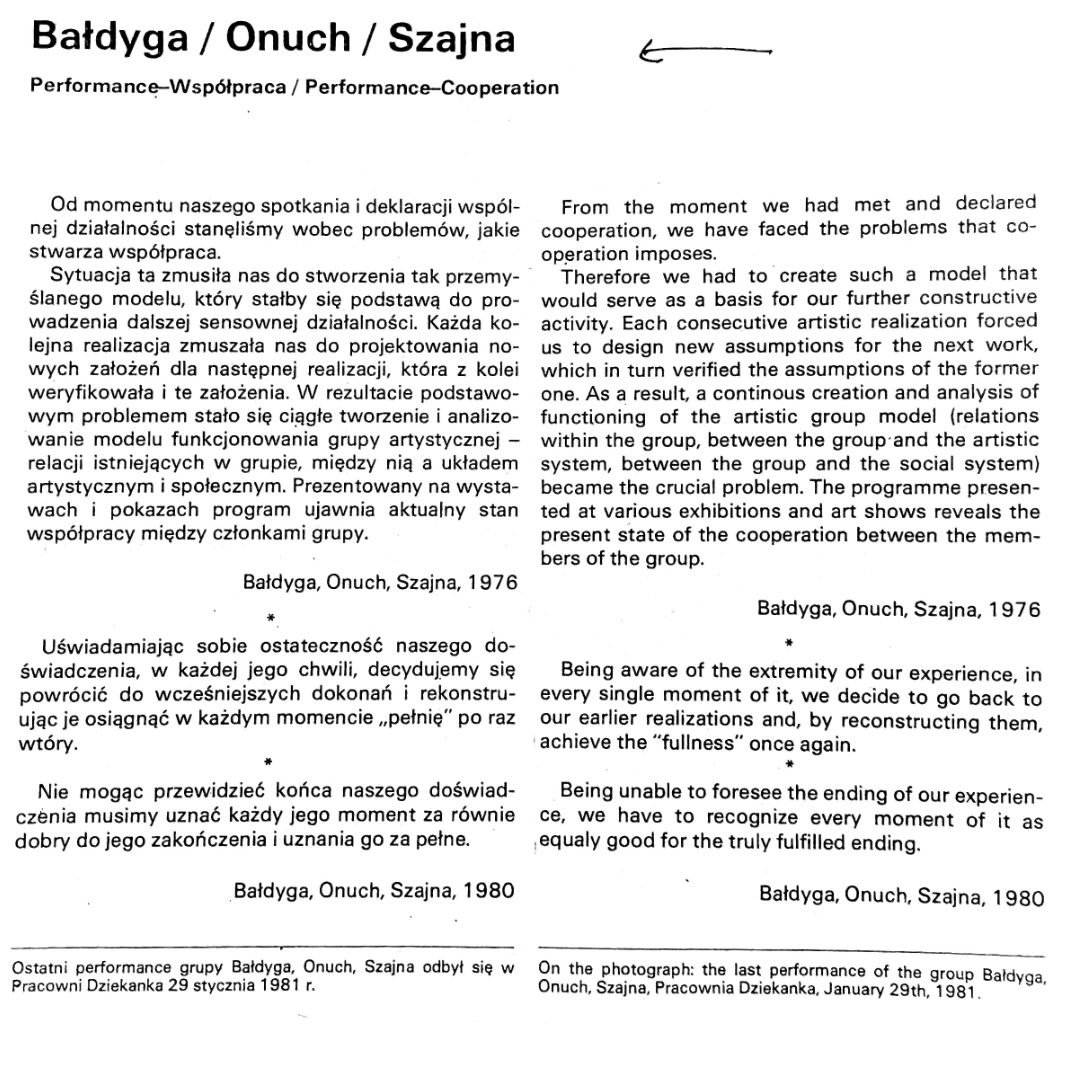 W latach 1976-81 wraz z Januszem Bałdygą i Jerzym Onuchem współtworzył grupę „Pracownia Dziekanka” (nazywaną również Bałdyga-Onuch-Szajna).